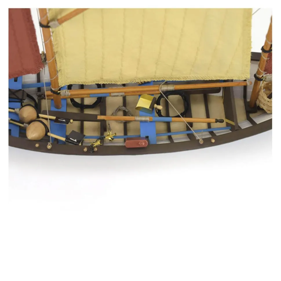 Ce kit de modélisme naval en bois avec la maquette contient toutes les pièces nécessaires pour construire la fidèle réplique miniature. Il est composé de plaques découpées par un laser de haute précision pour pouvoir extraire les pièces sans problème. Il est également livré avec un ensemble de baguettes, placages et baguettes rondes en bois, avec accessoires en die-cast, laiton et bois et avec autocollant. Il apporte également un magnifique ensemble de voiles en coton cousues à la main prêtes à être placées et du fil de coton. En cadeau, vous trouverez une base d’exposition en bois à assembler avec la plaque signalétique du bateau.