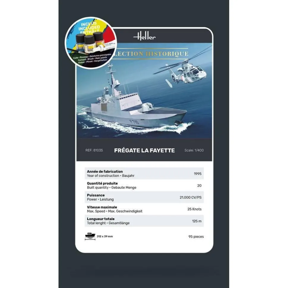 Caractéristiques détaillées : Maquette Bâteau : STARTER KIT : Frégate La Fayette in 1:400