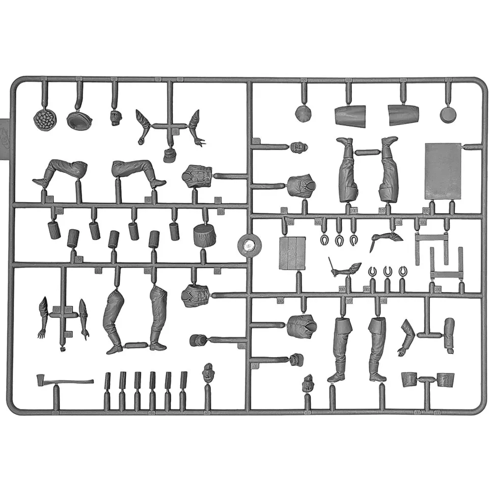comprend une cuisine de campagne sur roues avec un camion AHN, deux figurines de cuisinier, deux figurines d’assistant et divers équipements.