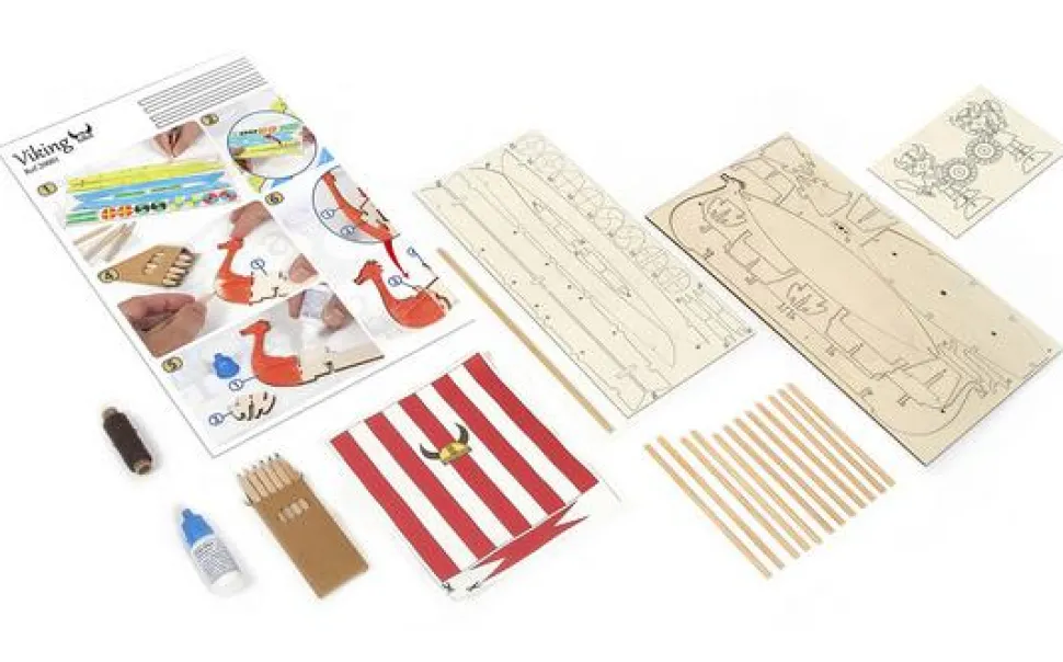 Kit complet d’une maquette de bateau de viking à assembler avec colle et crayons.Assemblez et coloriez le vaisseau VIKING. Naviguez sur les mers comme l’ont fait les braves et légendaires guerriers vikings. Le processus d’assemblage est très simple et amusant grâce à la structure en bois qui s’adapte parfaitement sans l’utilisation d’outils. Avec les instructions étape par étape, vous apprécierez de piloter le bateau VIKING .