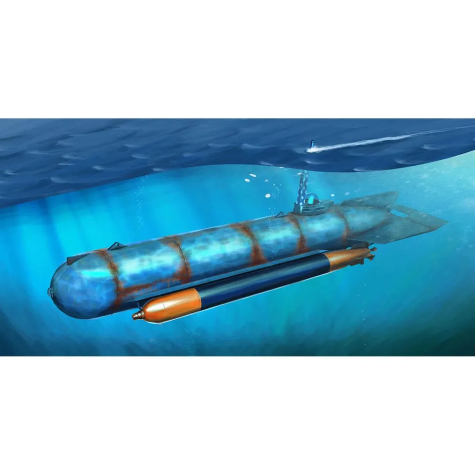 Maquette d’un sous-marin allemand : Molch de la marque Hobby Boss.Echelle : 1/35Dimensions : 31 x 6,2Nombre de pièces : 70Note : colle et peintures non fournies