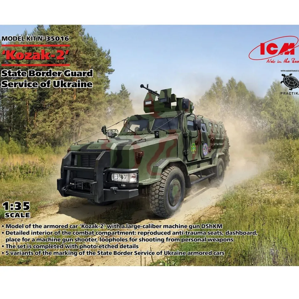 Maquette véhicule militaire : Kozak-2, Service de garde-frontière de l’Ukraine de la marque ICM.
