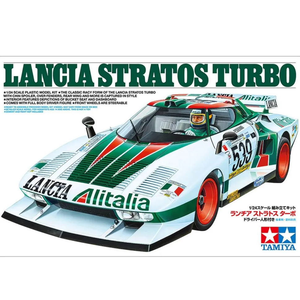 Tamiya présente cette maquette édition limitée à l’échelle 1/24 de la Lancia Stratos Turbo, une voiture de rallye ayant largement dominé les épreuves de rallye dans les années 70.
