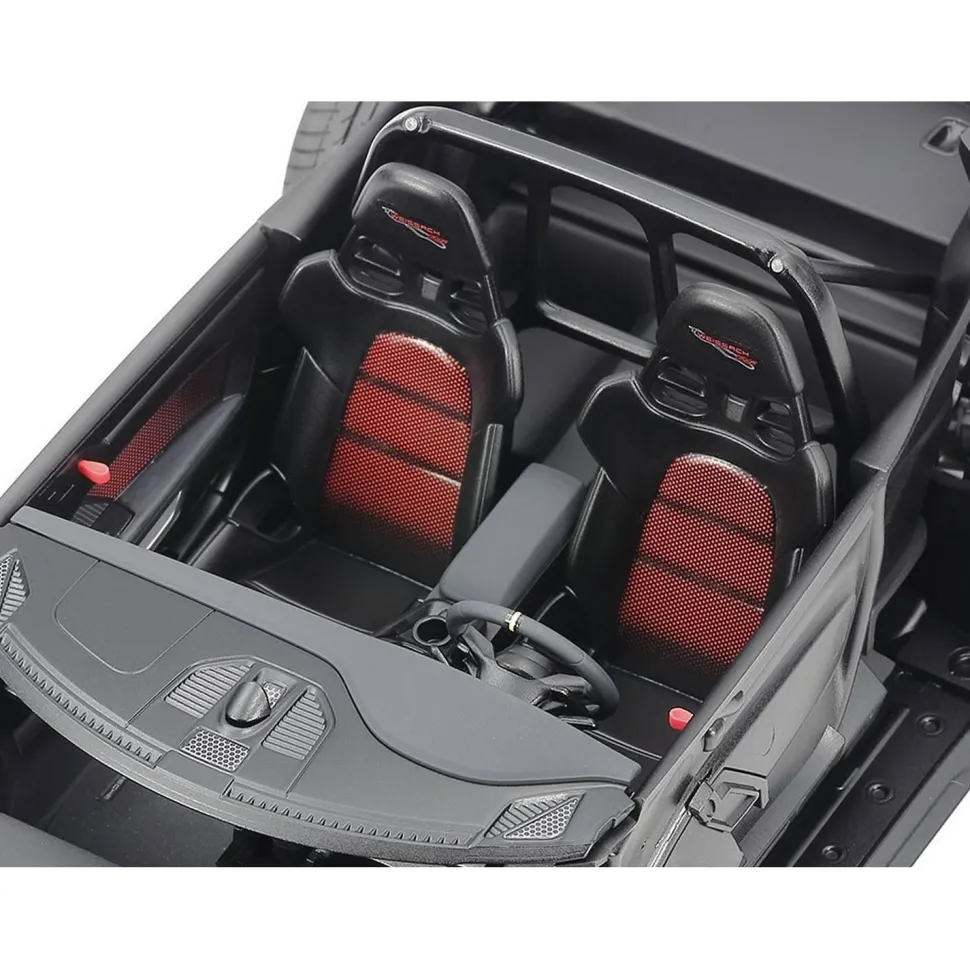 Les décalcomanies représentent le tableau de bord, le capot et le toit en fibre de carbone, les surfaces des sièges en maille et les garnitures de porte.