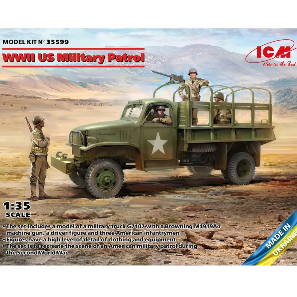 ICM présente ce coffret d’une patrouille militaire américaine de la Seconde Guerre Mondiale à l’échelle 1/35.