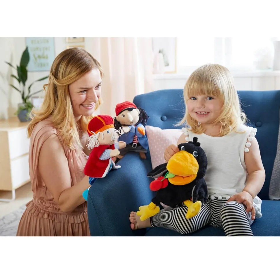 Découvrez la marionnette corbeau Théo de la marque Haba.