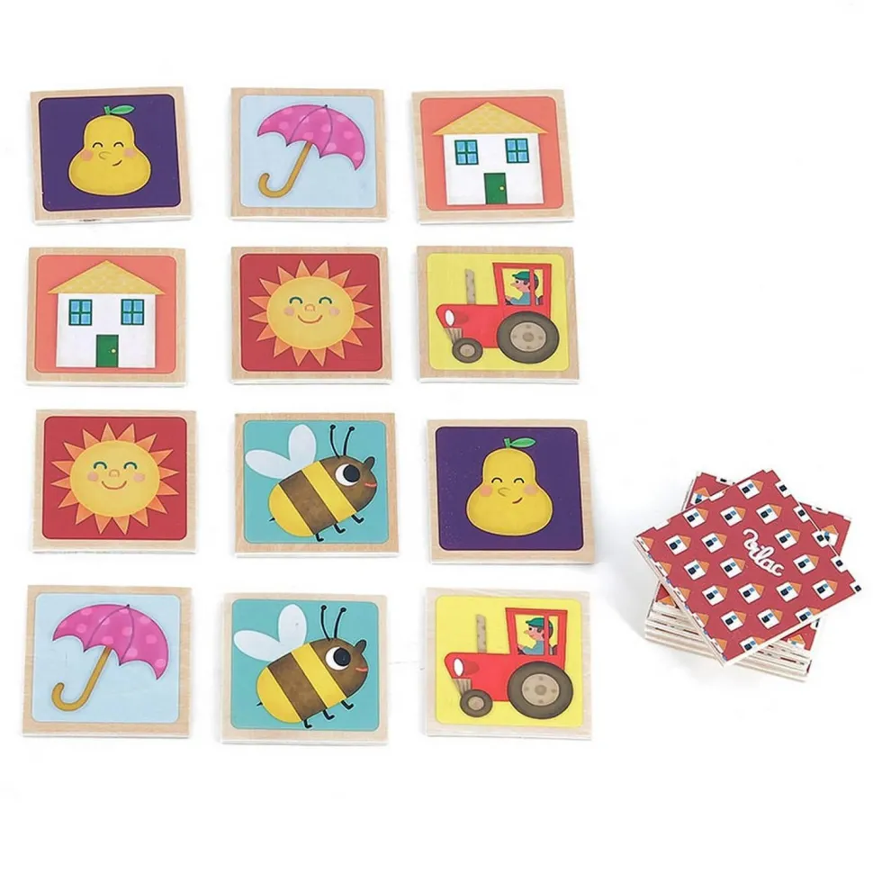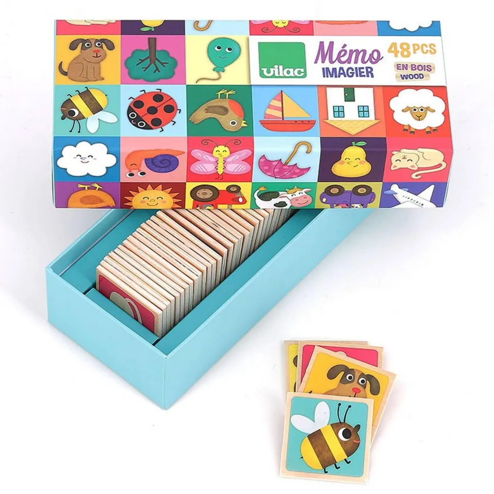Découvrez ce beau Mémo Imagier illustré avec talent par Mélusine Allirol de la marque Vilac : un jeu de mémoire qui permettra aux enfants d’enrichir leur vocabulaire et leur mémoire pour reconstituer les 24 paires !