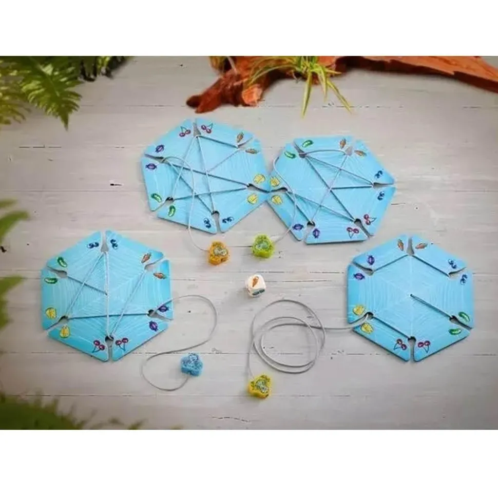Le principe du jeu est simple : être le dernier à être encore entrain de tisser sa toile d’araignée. Pour cela, vous avez à votre disposition un toile et un fil. Lorsque vous tirez le dé, celui-ci vous indique le chemin à suivre avec votre fil.