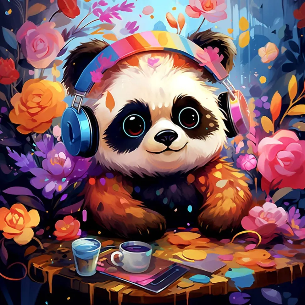 Caractéristiques détaillées : Mini peinture au numéro : Panda fantaisie et fleurs – toile tendue sur chassis