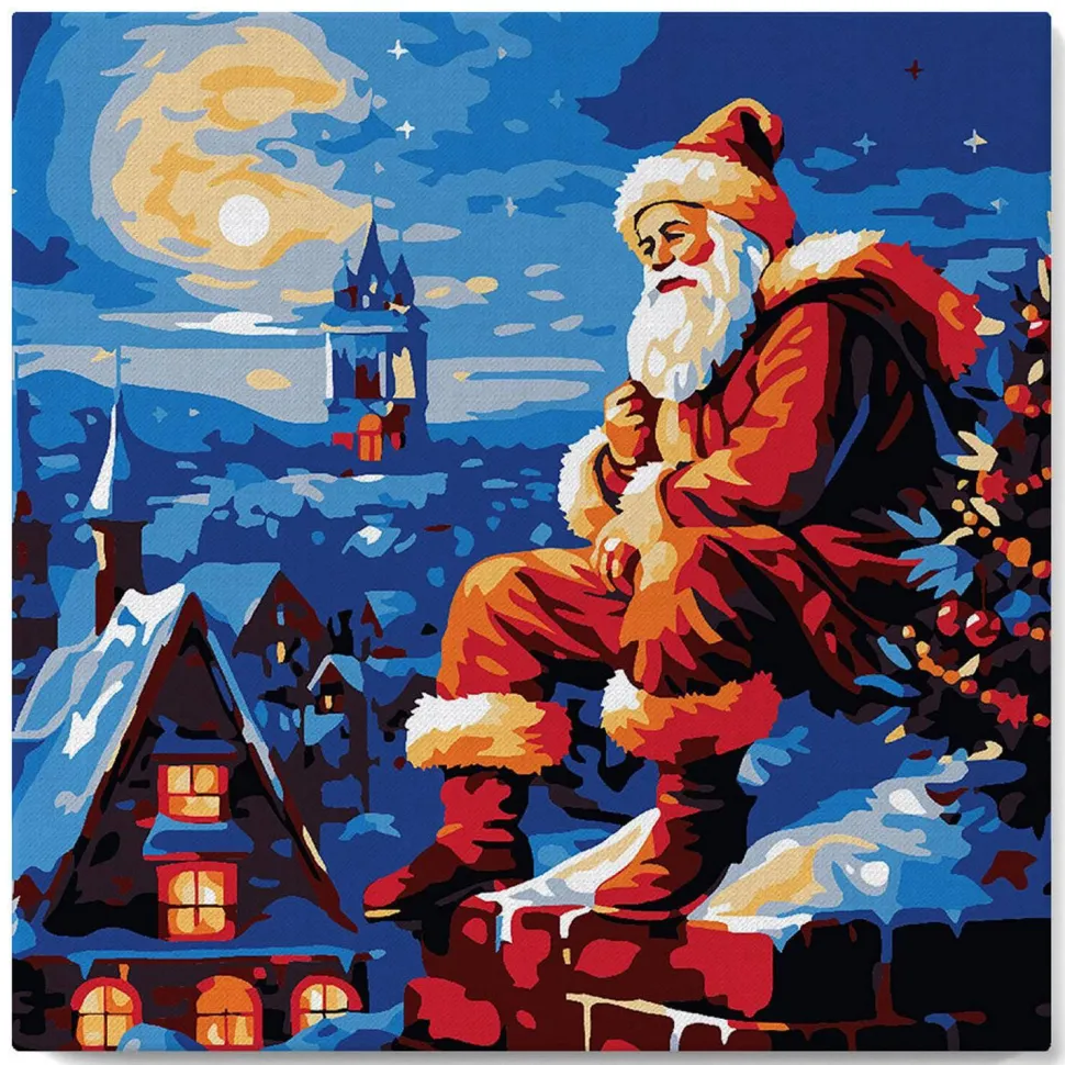 Caractéristiques détaillées : Mini peinture au numéro : Père Noël sur les toits – toile tendue sur chassis