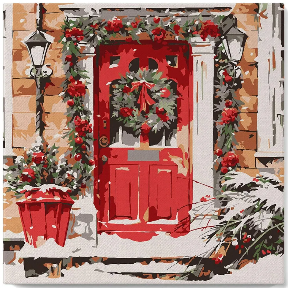 Caractéristiques détaillées : Mini peinture au numéro : Porte Rouge – toile tendue sur chassis