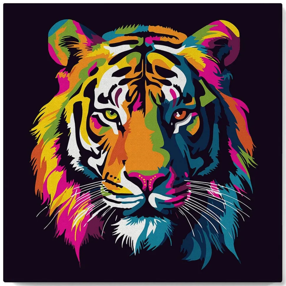 Caractéristiques détaillées : Mini peinture au numéro : Tigre Abstrait Pop Art – toile tendue sur chassis