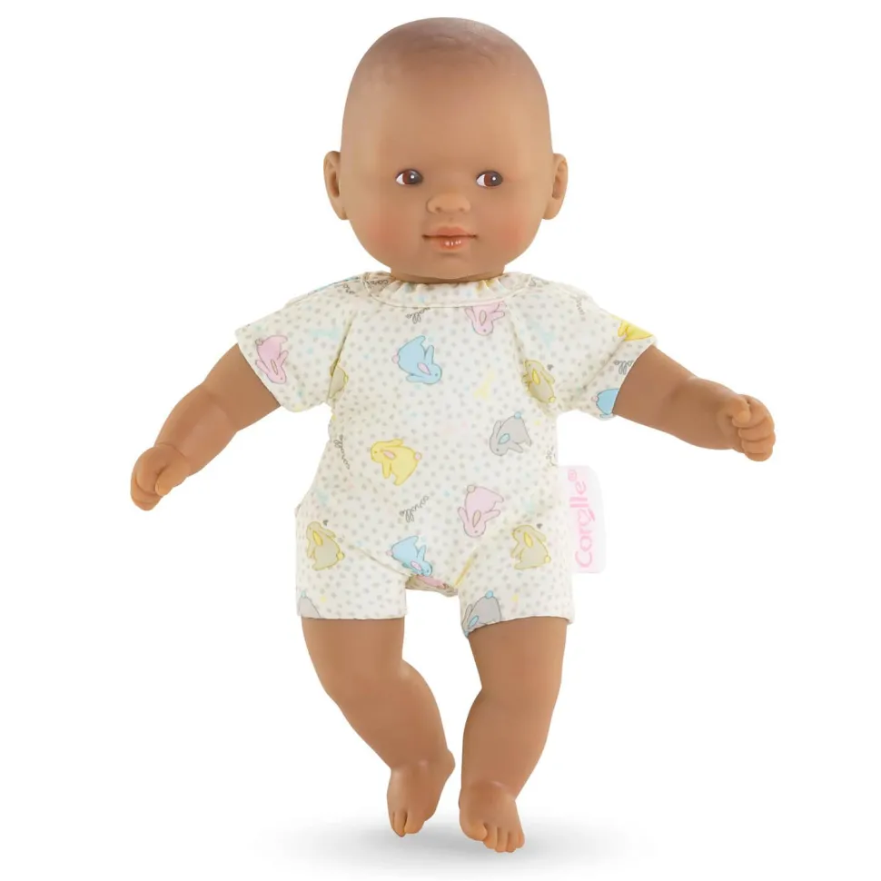 Mini Calin est un mini poupon de 20 cm léger et facile à emmener partout. Ce petit poupon à la peau mate et les yeux marron, peints sur son visage. Son visage, ses bras et ses jambes, à la délicate senteur de vanille, sont en vinyle doux au toucher.