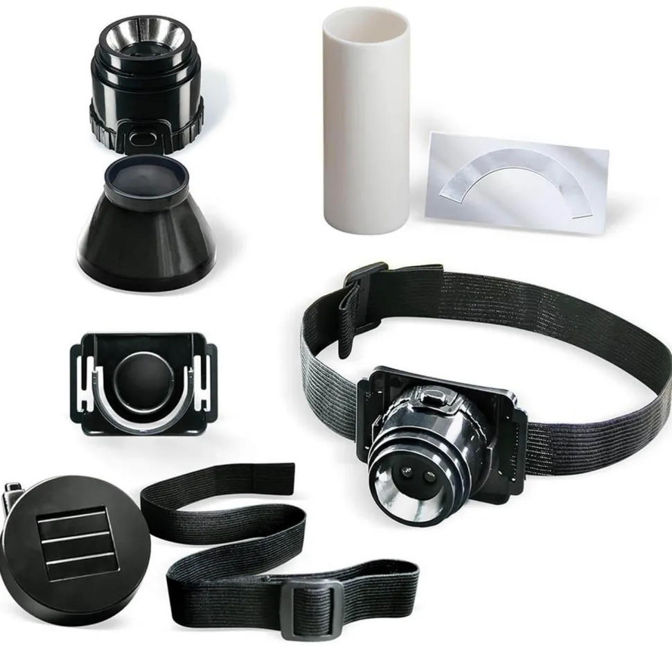 Illuminez, envoyez du code morse et naviguez dans l’obscurité comme un agent secret ! Cette lampe 6-en-1 peut être utilisée comme lampe frontale (avec bandeau réglable), lampe de poche, lampe de table, lampe de sécurité, lampe de camping et même comme clignotant en code Morse !
