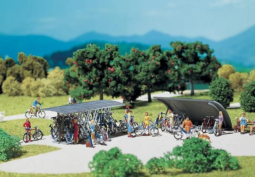 Caractéristiques détaillées : Modélisme HO : Accessoires de décor : 2 râteliers à vélos avec bicyclettes
