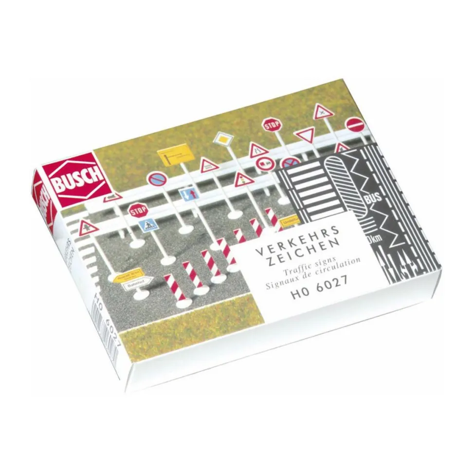 Busch 6027 vous propose ce set de panneaux de signalisation.Les panneaux de signalisation sont des éléments de la signalisation routière. Ils désignent à la fois le dispositif sur lequel est implanté un signal routier et le signal proprement dit. Placés sur le côté des routes, ils ont pour fonction de rendre plus sûre la circulation routière en informant les usagers d’éventuels dangers qu’ils peuvent rencontrer, de faciliter cette circulation, en indiquant par exemple les directions à suivre …Dans ce set, quelques panneaux sont en allemand.Echelle HO (1/87)