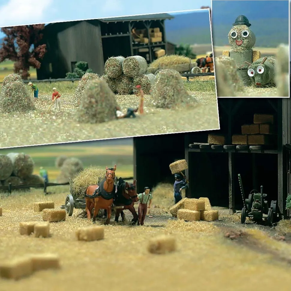Avec ce kit reproduisez une scène de la vie rurale : les moissons. Contenu du kit : – 18 bottes de paille. – 6 tas de foin. – 18 paquets de paille. Echelle H0 : 1/87