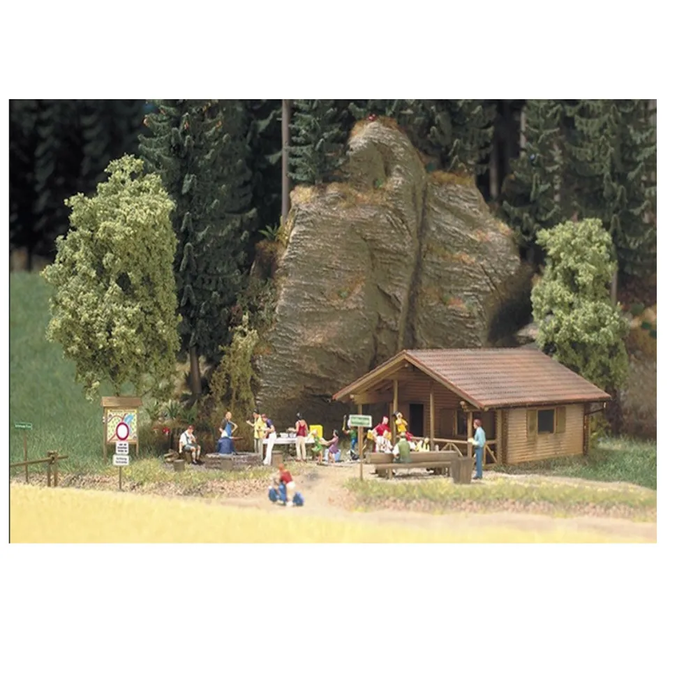 Busch 1035 vous propose ce kit permettant de reproduire un chalet en bois de pin clair typique de la Forêt Noire.La porte et les fenêtres peuvent être mis en place en position ouverte ou fermée.La gouttière a un aspect cuivré comme l’original.Dimensions : 111 x 50 x 92 mmEchelle HO (1/87)