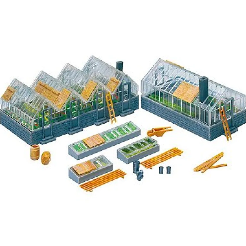 Avec 2 serres en verre, 3 carrés, nattes de paille de couverture et accessoires.Ce modèle peut compléter l’article Faller-130253.Epoque : 1921 – 1945.Dimensions installation de serre 1 : 9.2 x 4.7 x 5.8 cm. Dimensions installation de serre 2 : 7.1 x 4.2 x 6.3 cm. Nombre de pièces : 67.