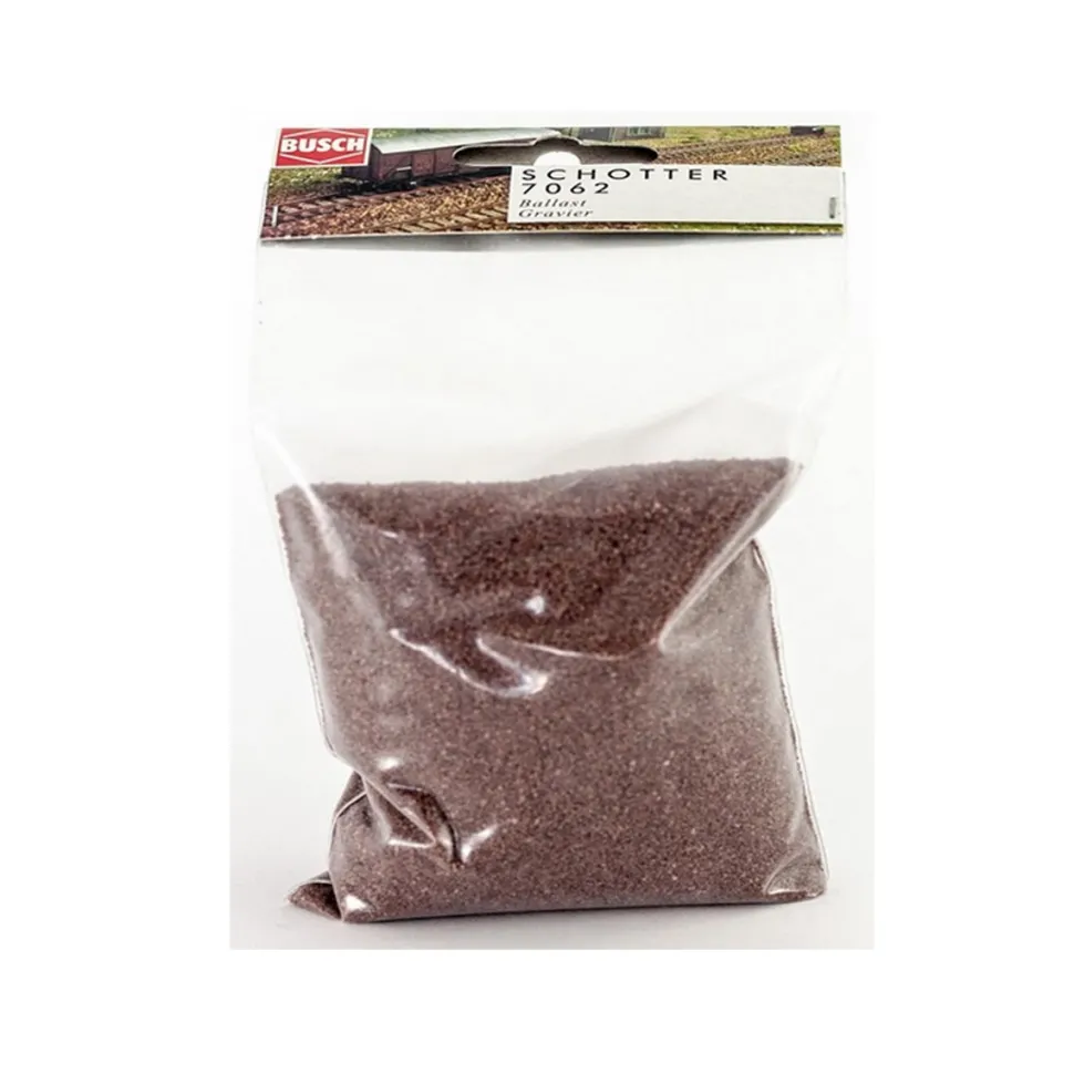 Busch 7062 vous propose ce sachet de flocage : Gravier brun.Poids : 230gConvient pour les échelles H0 (1/87), TT (1/120), N (1/160) et Z (1/220).