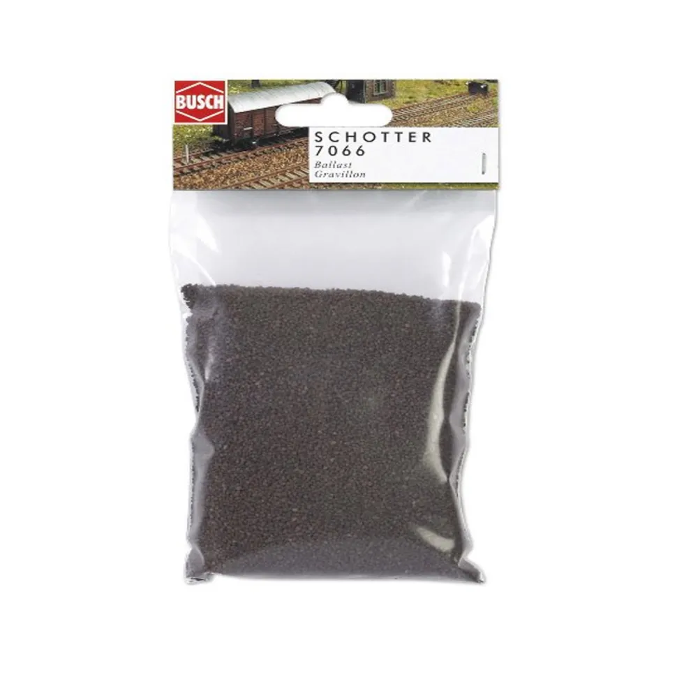 Busch 7066 vous propose ce sachet de flocage : Gravier brun foncé.Poids : 230gConvient pour les échelles H0 (1/87), TT (1/120), N (1/160) et Z (1/220).