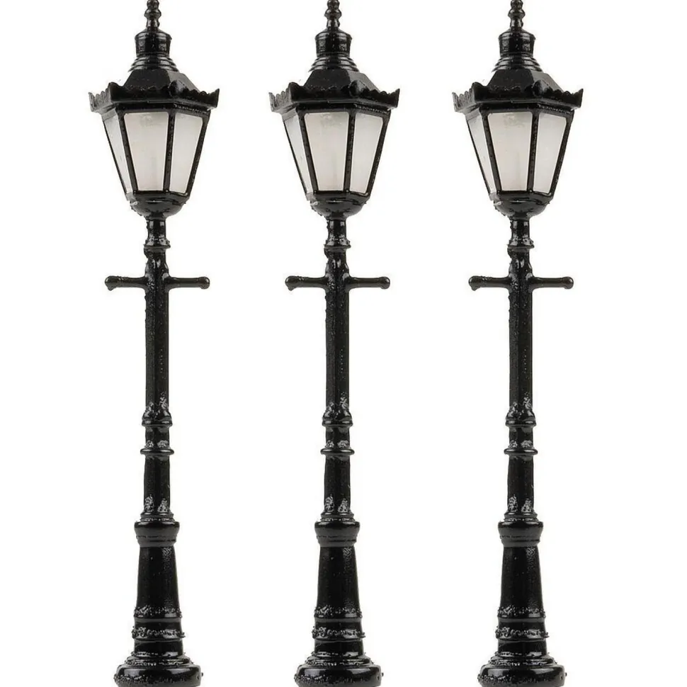 Lot de 3 réverbères de parc LED hexagonaux à couronne à l’échelle N (1:160) de la marque Faller.