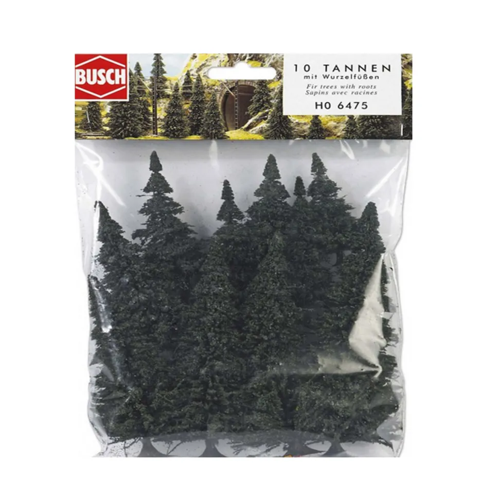 Busch 6475 vous propose ce set de 10 sapins argentés pour l’aménagement de votre diorama.Hauteur des arbres : de 60 à 135 mmConvient pour échelles HO (1/87), TT (1/120) et N (1/160).