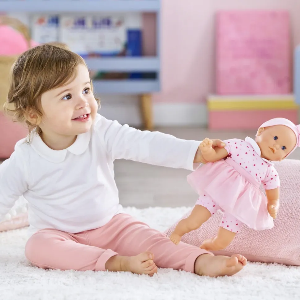 Mon Adorable Petit Poupon Cœurs est le premier compagnon de tendresse ! C’est un petit poupon de 30 cm, une taille parfaite et adaptée aux bras et aux mains de l’enfant pour jouer avec.