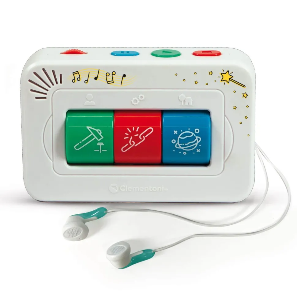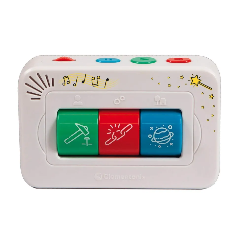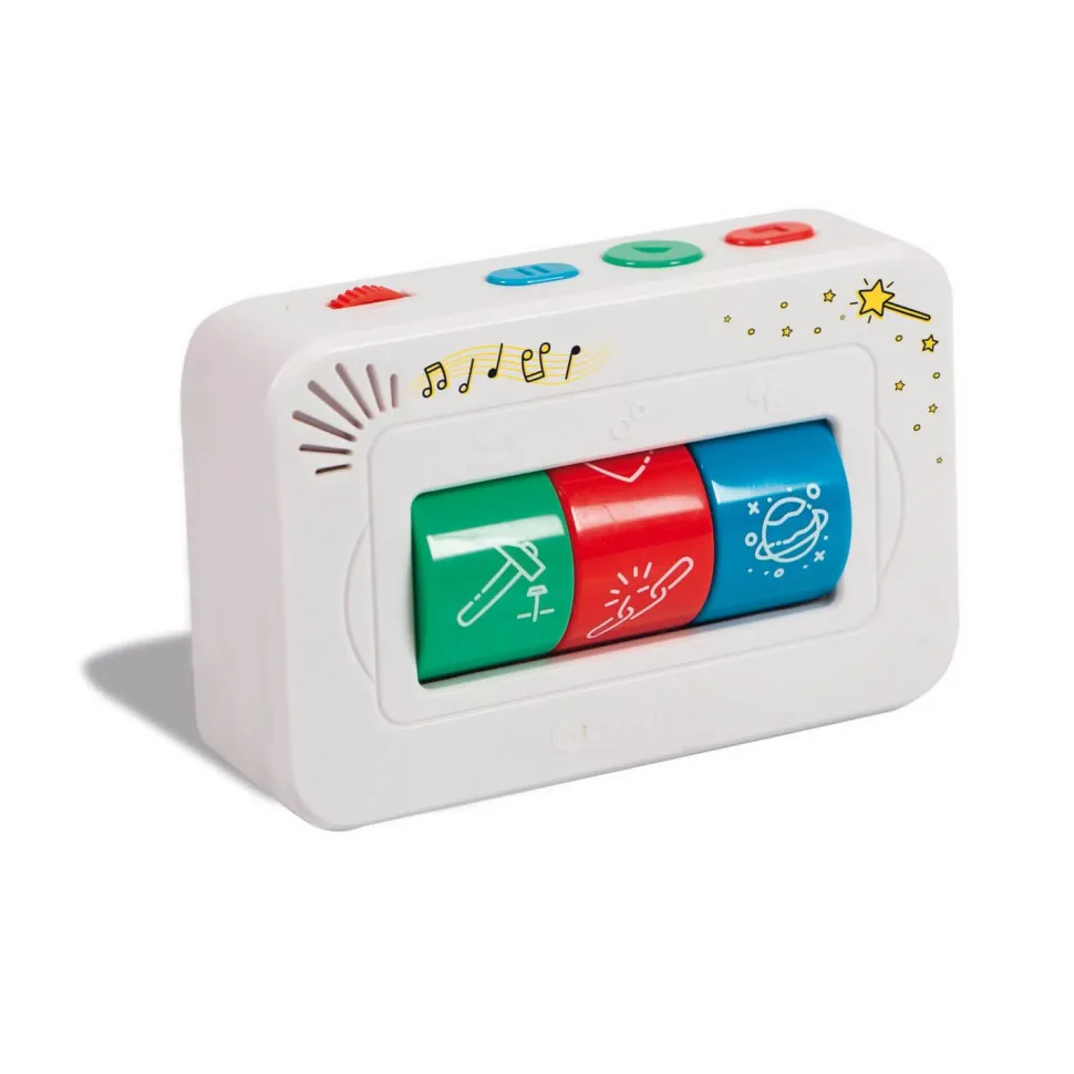 L’enfant peut tourner les 3 rouleaux pour décider du personnage, du lieu et du thème.Plus de 2 heures de contenu et de divertissement déjà inclus, et de nouveaux contenus téléchargeables gratuitement sur le site de Clementoni.