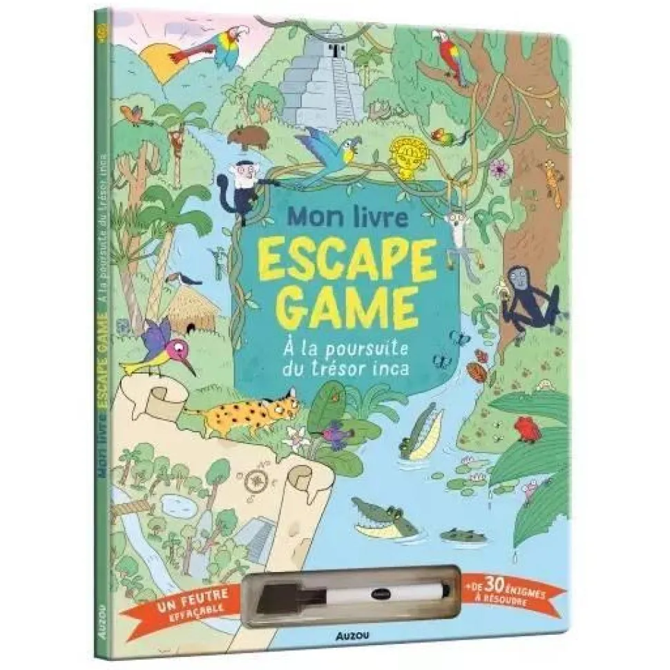 Avis aux aventuriers en herbe! Partez à la recherche du fameux trésor du roi inca Yucucu Mayatata! Attention, la voie est périlleuse dans la jungle amazonienne et vous aurez besoin de tous vos neurones ainsi que de votre précieux inventaire. Un livre escape game dans lequel l’enfant doit résoudre plus de 30 énigmes. Il est accompagné par un inventaire dans lequel il doit ajouter et retirer des objets au fur et à mesure des quêtes. Le livre est effaçable pour pouvoir recommender à l’infini!
