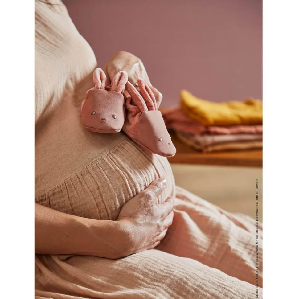 Ce superbe coffret de naissance contient un doudou lapin, un anneau de dentition en silicone, des chaussons lapin, le tout dans une teinte terracotta. Le doudou Lapinoo, fais en velours côtelé et en tissus léger, saura accompagner bébé de jour comme de nuit ! De plus, afin d’accompagner bébé même dans les moments plus douloureux, un anneau de dentition en silicone est fourni. Cet anneau est idéal pour la poussée des premières dents de bébé, avec une face lisse et une face avec picot pour favoriser la percée des premières dents et masser les gencives douloureuses. Enfin, de magnifiques chaussons lapin couvriront les petits petons de bébé de 0 à 6 mois.
