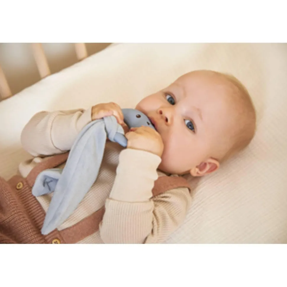 Contenu : 1 doudou lapin, 1 anneau de dentition en silicone, 1 paire de chaussons lapin