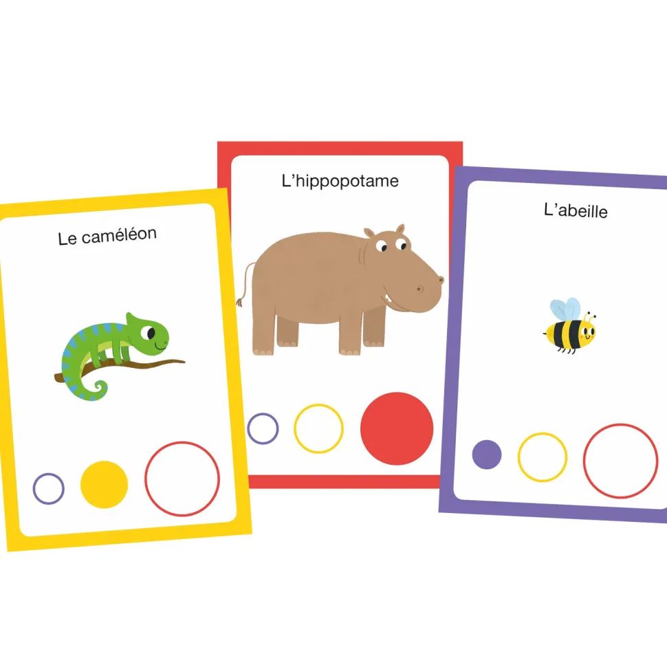 Jeu incontournable à avoir chez vous, adapté aux jeunes enfants !Règles du jeu :Retournez vos cartes en même temps que les autres joueurs : celui qui a l’animal le plus gros a gagné !Caractéristiques : – Durée : environ 15 min,- De 2 à 4 joueurs,- 45 cartes,- Dès 3 ans.Ce jeu d’une quinzaine de minute est idéal pour les plus jeunes. Il n’est pas long ce qui permet à l’enfant de ne pas se lasser trop vite. De plus ce jeu permet de bien différencier les gros des petits et apprendre à jouer à plusieurs suivant une règle.Un jeu adapté aux classes de maternelle ! Relu et testé par des enseignants de maternelle ! Petit jeu pour jouer en famille ou entre amis. Les cartes sont dans un petit coffret en carton rigide ce qui permet de l’emmener facilement partout et de le ranger sans abimer les cartes.