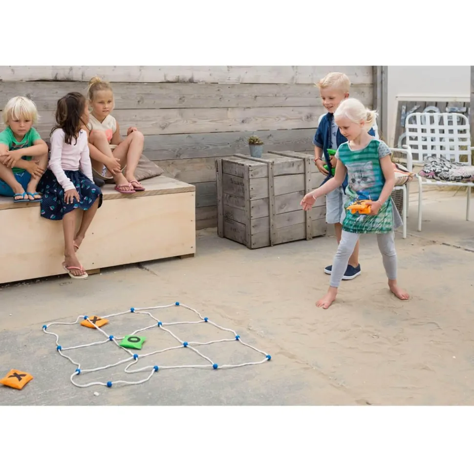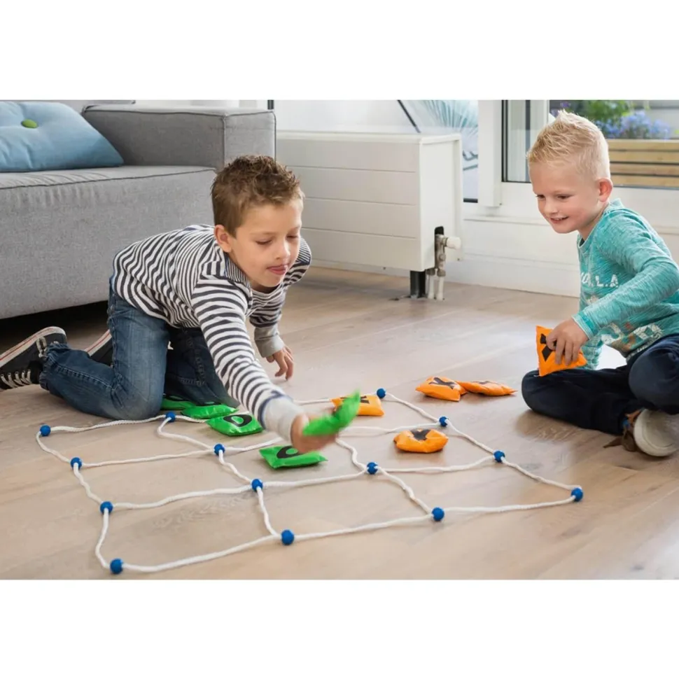 Déposez les cordes « plateau de jeu » correctement au sol et essayez d’être le premier à aligner trois sacs de même forme géométrique : des croix ou des ronds. Attentions, car il faudra faire preuve d’observation mais aussi de stratégie ! Connaissez-vous l’astuce pour gagner à coup sûr ?