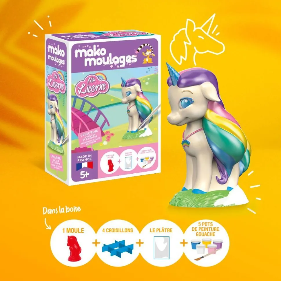 Devient une reine du moulage et fabrique ta propre licorne grâce à Mako création ! A l’aide du moule et du plâtre, concoit ta figurine, tu n’auras plus qu’à la décorer une fois le temps de séchage écoulé.