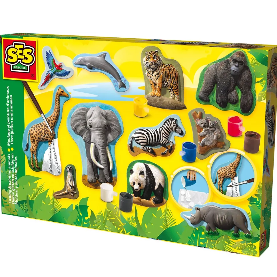 Reproduisez la savane avec ce kit de moulage ! Vous allez pouvoir peupler la terre et l’océan avec ces différentes espèces d’animaux ! Le kit comprend : – 11 moulages d’animaux. – 1 sachet de plâtre. – 1 pinceau. – 6 pots de peinture. Réalisez les animaux de la jungle et reconstituez une scène de la vie sauvage dans votre chambre ! Un tigre qui se dresse au sommet d’un rocher pour guetter sa proie, un singe en quête de bananes pour son repas, un girafe bien dressée pour repérer au loin les prédateurs éventuels, un zèbre au galop fuyant l’attaque d’un lion, une maman koala et son petit perché sur une branche !Vous allez vous amuser pendant des heures et après le séchage de la peinture vous pourrez admirer le résultat : bluffant ! Dimensions de la boîte : 20 x 30 x 4 cm.