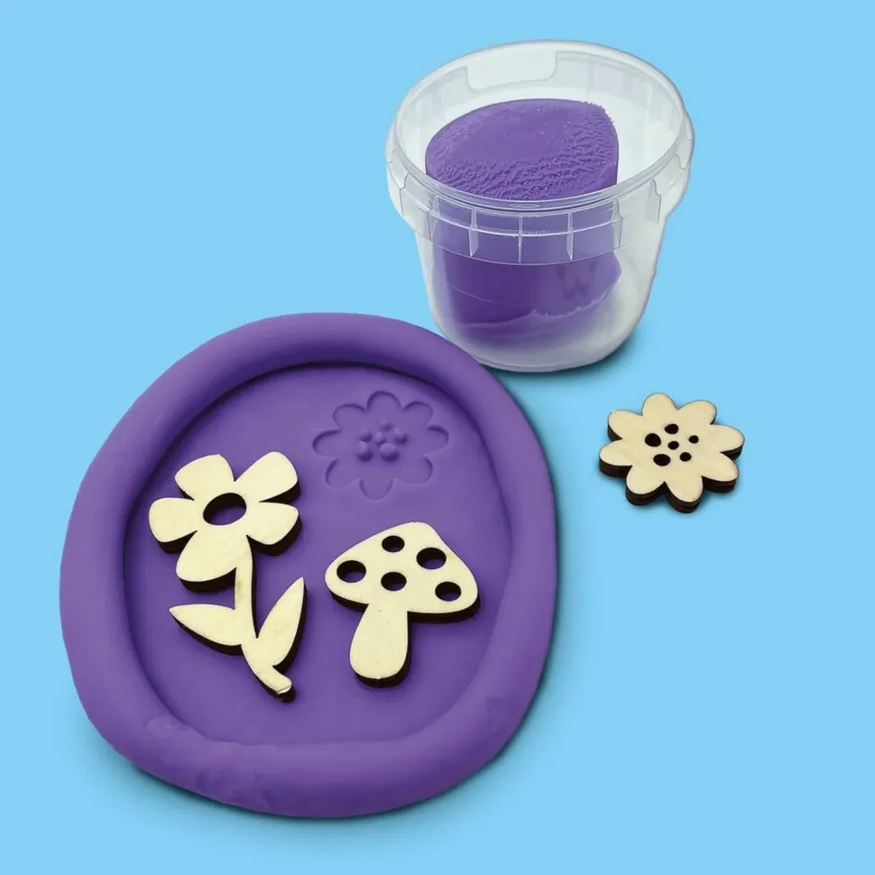 Contenu : Moule en bois, plâtre (2x90g), 6 couleurs de peintures, pinceau, bâton à gratter, sable à mouler.