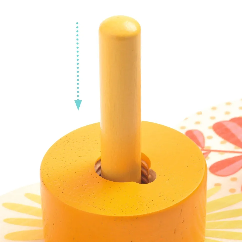 Contenu : 1 base avec des tiges et 9 pièces colorées en bois.