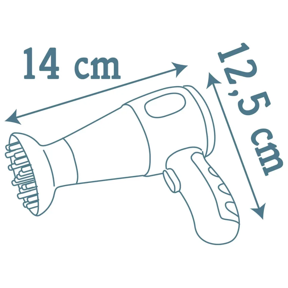 Le sèche-cheveux possède des fonctions lumineuses et sonores comme un vrai ! Il a également deux embouts qui peuvent s’échanger : 1 pour les brushing et 1 diffuseur pour les boucles.
