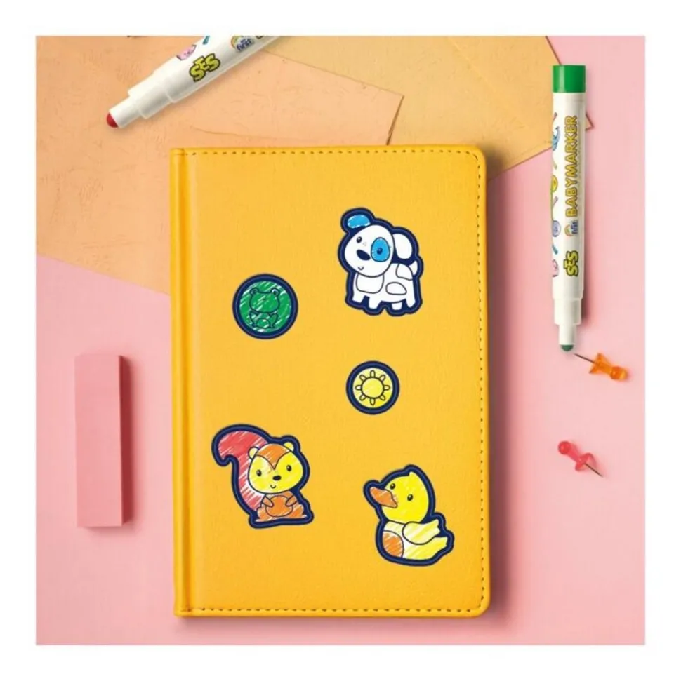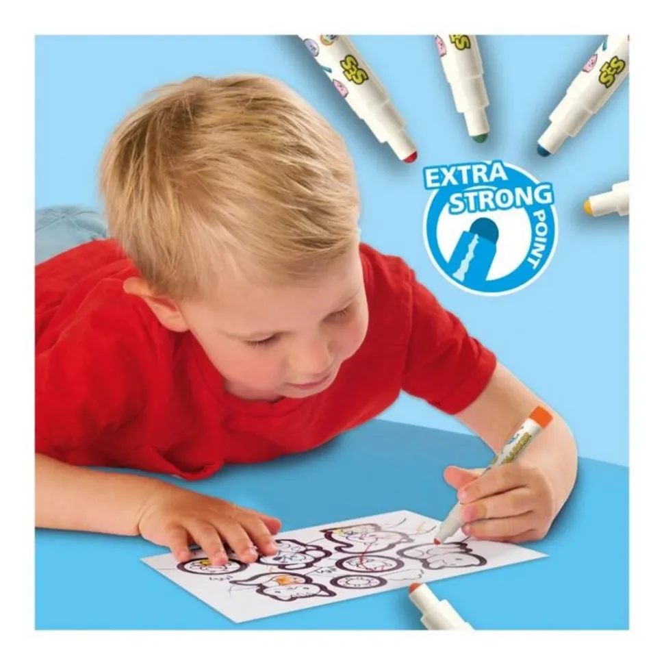 Les cinq marqueurs bébé fournis dans l’ensemble (jaune, orange, rouge, vert et bleu) ont été conçus en tenant compte des besoins des tout-petits …. Leur pointe ronde et extra robuste est capable de résister à une utilisation parfois maladroite, assurant ainsi une longue durée de vie et un coloriage sans frustration. De plus, l’encre des marqueurs est lavable, ce qui permet de nettoyer facilement les éventuels débordements sur la peau ou les vêtements, offrant ainsi une tranquillité d’esprit aux parents.