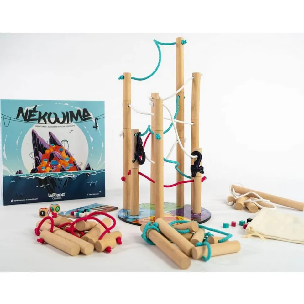 Nekojima est un jeu d’adresse en bois exigeant, qui mettra à l’épreuve votre habileté et votre sang froid. L’objectif est de maintenir en équilibre des poteaux électriques, en veillant à ce qu’aucun câble ne se touche. Mais attention vous n’aurez ni le choix de l’emplacement ni celui de leur taille. En mode compétition, celui qui fait basculer la structure est éliminé du jeu. En mode coopération, le but est de collaborer pour avancer aussi loin que possible sans que l’ensemble ne s’effondre. Il s’agit d’un défi qui sollicite à la fois de la coordination et de la précision, que vous jouiez en solo ou en équipe. Préparez-vous à mettre vos compétences à l’épreuve et à vivre des moments palpitants avec Nekojima !