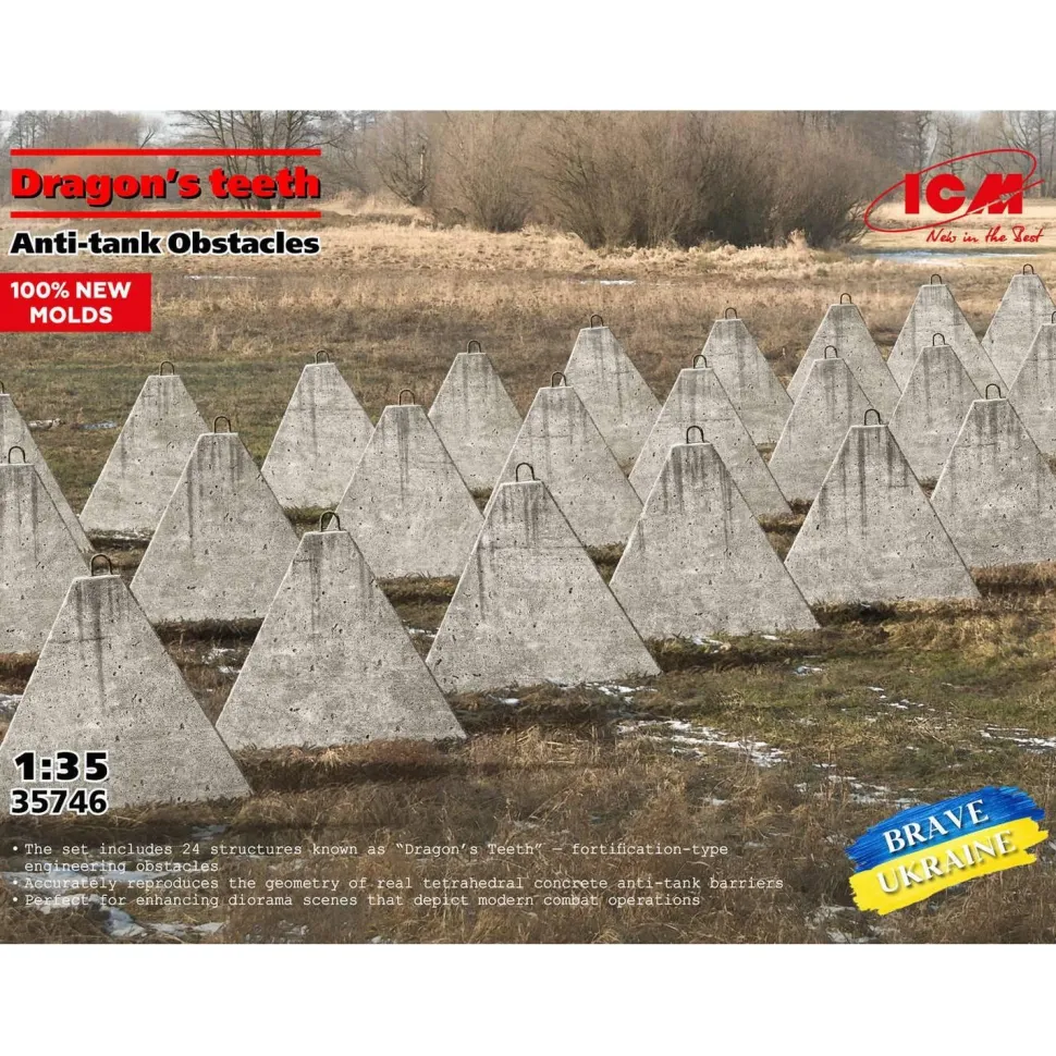 Des obstacles anti-chars en béton, également connus sous le nom de « dents du dragon » (dragon’s teeth), ont été utilisés pour la première fois pendant la Seconde Guerre mondiale. On croit qu’ils ont été inventés en Finlande comme moyen de défense contre les véhicules blindés de l’armée rouge. Le but de ces obstacles était non seulement d’arrêter les chars et autres véhicules blindés, mais aussi de diriger leur mouvement dans des zones où ils pourraient être visés par le feu. Ces types d’obstacles ont été largement utilisés par tous les participants au conflit, notamment les pays neutres. Par exemple, la Suisse a également utilisé des obstacles similaires, en les désignant comme fortifications de Toblerone, en raison de leur ressemblance avec la forme des célèbres barres de chocolat.