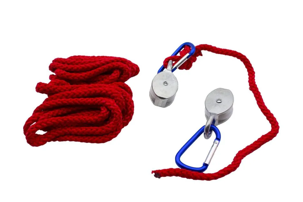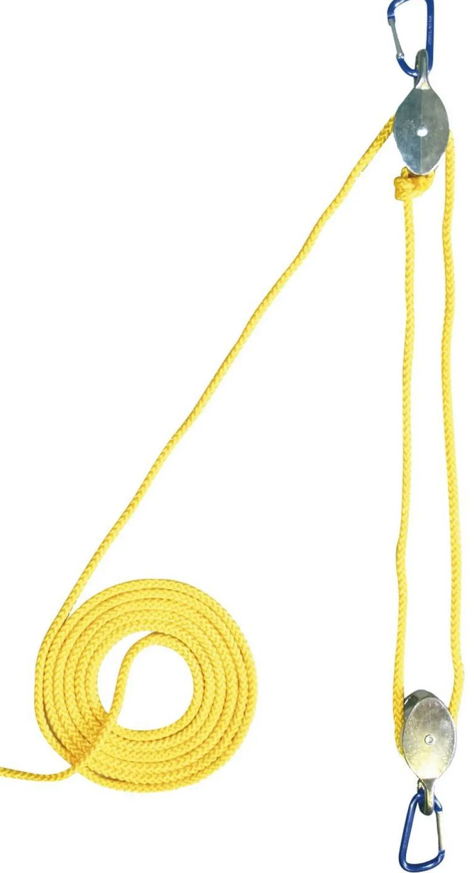 Indispensable pour la cabane dans les arbres… car le palan transporte sans effort tout ce qui est nécessaire. Vous vous épargnez ainsi les montées et descentes incessantes, et en plus, c’est amusant ! Accrochez le palan à une branche épaisse grâce au mousqueton. Le second mousqueton sert à maintenir les objets à hisser. Charge maximale : 15 kg. Contenu : 2 mousquetons, 2 rouleaux, corde de 5 m, mode d’emploi. Matériau : métal, PE. Dimensions : corde de 500 cm. Âge : 5 ans.