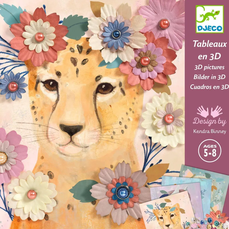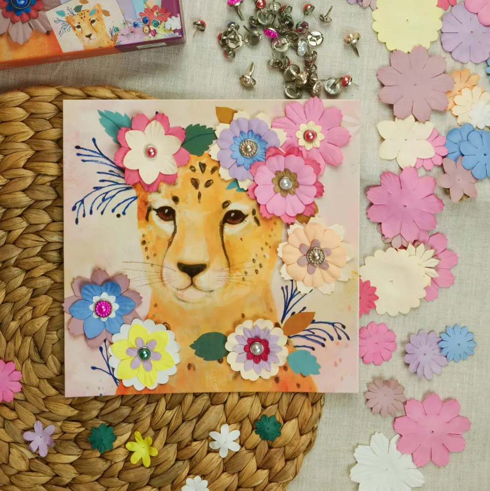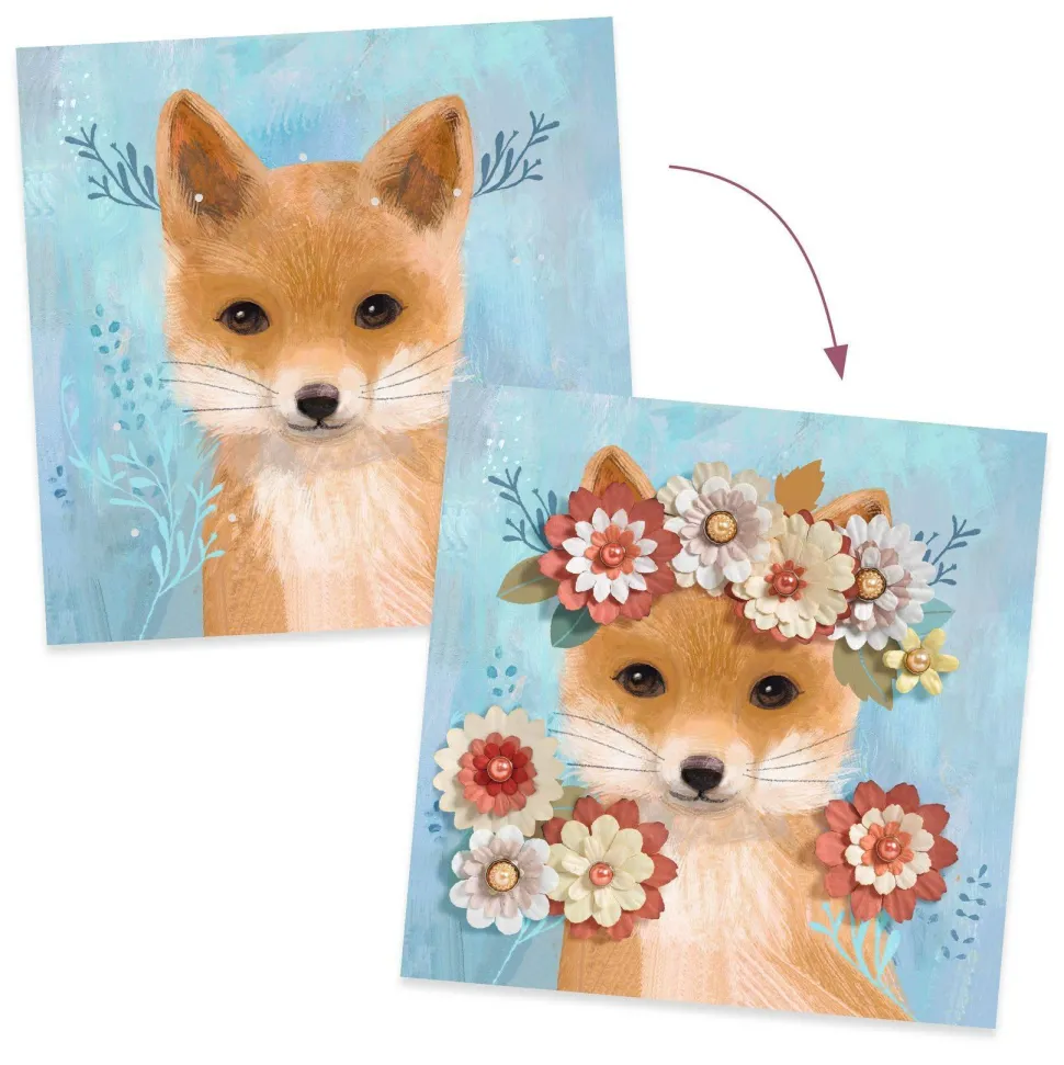 Contenu : 4 planches illustrées et perforées (20 x 20 cm), + de 100 corolles de papier, 36 attaches parisiennes, 1 livret pas-à-pas en couleurs.