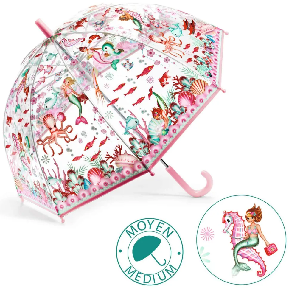 Une immersion au pays féérique des sirènes avec ce parapluie chic et pratique. Son ouverture manuelle dotée d’un système de protection permet à l’enfant de l’ouvrir et de le fermer sans se pincer les doigts.