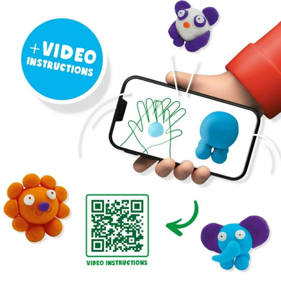 Réaliser un personnage en pâte à modeler peut encore être un véritable défi, mais avec un peu d’aide supplémentaire, il y parviendra sans aucun doute. La pâte à modeler contenue dans les sets FunDo correspond exactement aux 3 personnages que vous pouvez réaliser et comprend un bâton de modelage très pratique. En plus d’une carte d’instructions sur papier, les enfants peuvent participer à un tutoriel vidéo étape par étape sur une tablette ou un téléphone. Pratique ! Ils peuvent ainsi répéter ou mettre en pause à l’infini et, en tant que parent, vous n’avez pas à vous inquiéter ! Il suffit de scanner le code QR et de commencer à jouer avec la pâte à modeler ! La pâte à modeler de SES Creative est entièrement végétalienne, sans gluten et facilement lavable. L’argile est transparente, douce et peut être utilisée pendant longtemps grâce à l’emballage refermable qui peut facilement être réutilisé à d’autres fins.