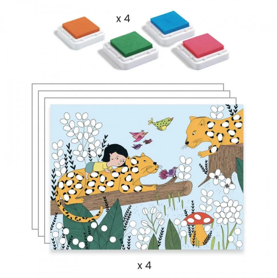 Dans ce coffret, votre enfant aura à sa disposition 4 tableaux à décorer avec ses empreintes. Il suffit de placer ses doigts sur les encreurs puis de les tamponner sur le tableau.