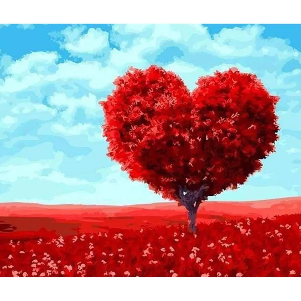 Peinture au numéro : Arbre rouge Coeur – sans châssis en bois