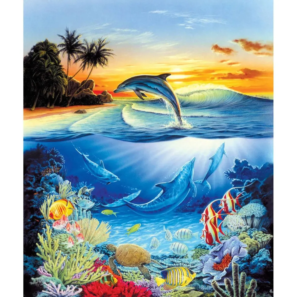 Caractéristiques détaillées : Peinture au numéro : Dauphins dans le lagon – sans châssis en bois