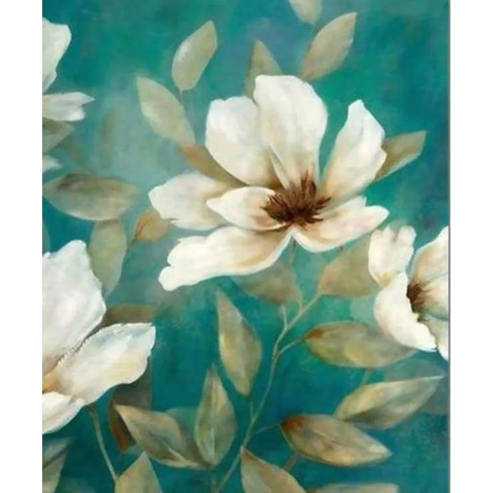 Description du produit : Peinture au numéro : Fleurs blanches abstraites – sans châssis en bois
